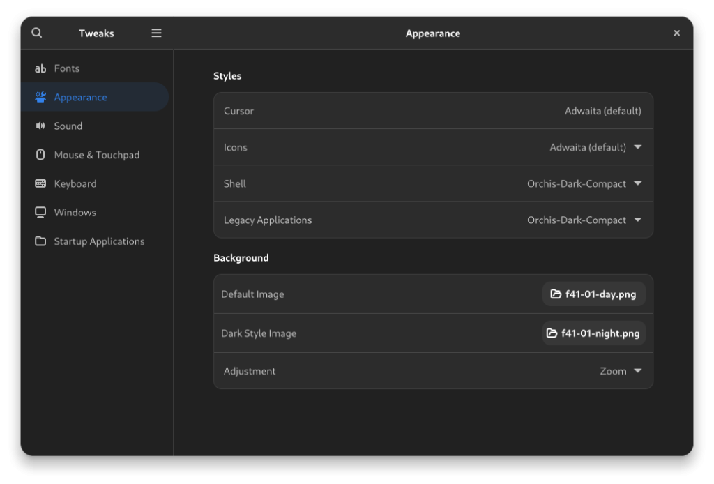Tweaks is a simple application which allows Fonts, Apperance(Themes) and few other modification to the Gnome interface which you might not have direct access to from the settings app. From here, you can modify things directly and allows you to apply user installed themes directly. To install Tweaks you can simply go to the Software Manager for Gnome or use the following command.